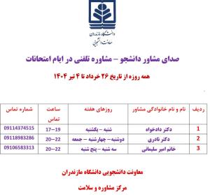 برنامه مشاوره حضوري و تلفني مشاوران مرکز مشاوره و سبک زندگي دانشگاه مازندران.docx
